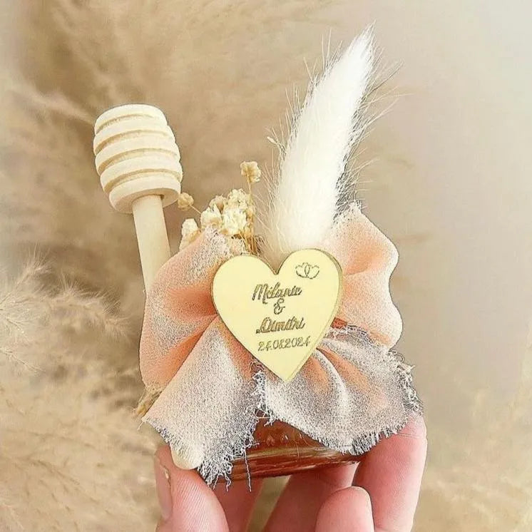 Verschenken Sie ein raffiniertes, personalisiertes Honigglas – eine süße Überraschung, die Ihre Gäste begeistert. Ideal als Gastgeschenk zur Hochzeit oder Taufe